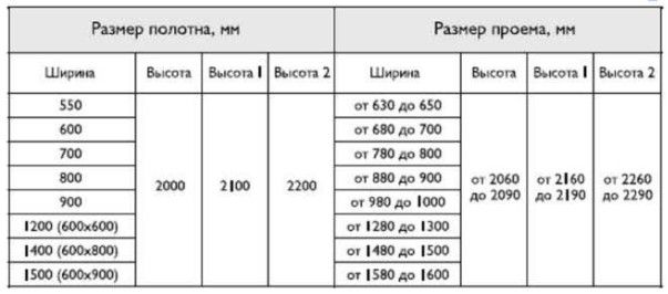 Стандартные размеры створки двери и рекомендуемые параметры дверного проема