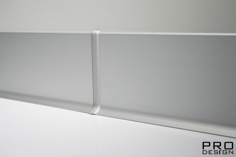 Плинтус Profilpas 90 изготовлен из анодированного алюминия, расцветка - матовое серебро.