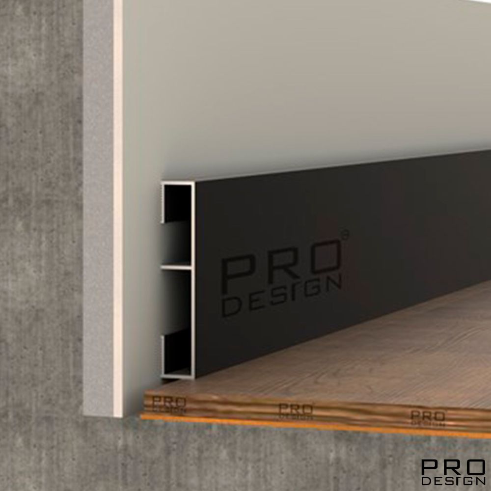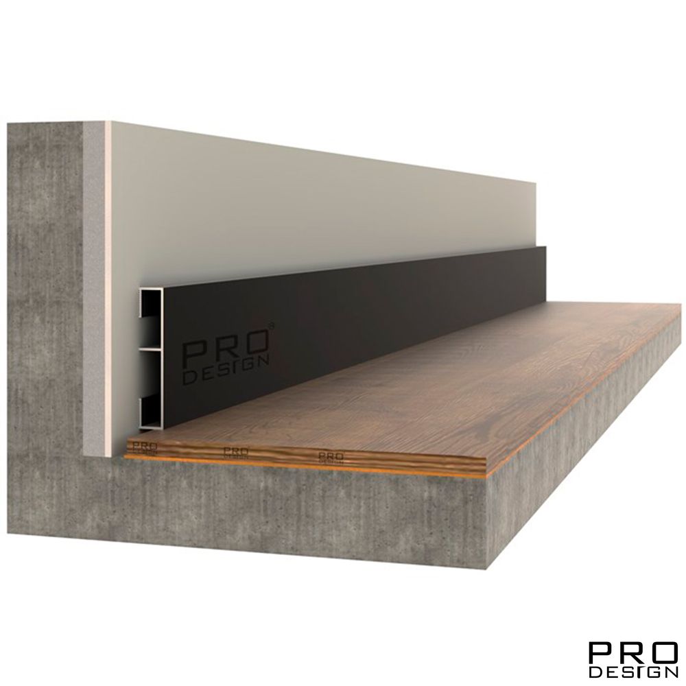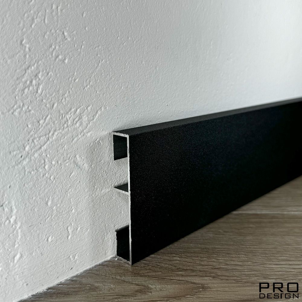 Алюминиевая вставка 1965 для плинтуса Pro Design Черный муар – готовое решение для установки в скрытый плинтус интерьеров в стиле минимализм, хай-тек, модерн, ар-деко, поп-арт.