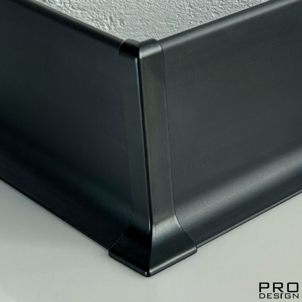 Угол внешний SYMETRIC L анодированный черный закрывает место соединения двух хлыстов плинтуса в угловой зоне. Сглаживает место перехода, предупреждает попадание влаги и грязи под плинтус и напольное покрытие, повышает надежность соединения и прочность конструкции в целом.