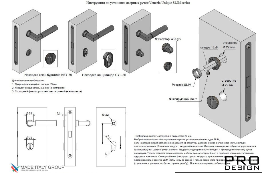 Универсальность сторон позволяет выполнять монтаж на дверях с разной направленностью открывания. Длина стороны розетки равна 10 см. Замочный механизм на изделии не предусмотрен. Комплектация фурнитуры включает 2 ручки − для расположения с обеих сторон двери.