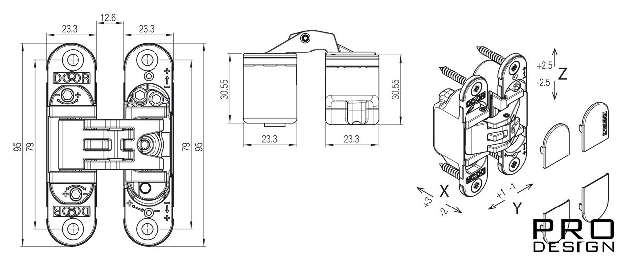Петля с 5 опорными точками, регулируемая по 3 осям