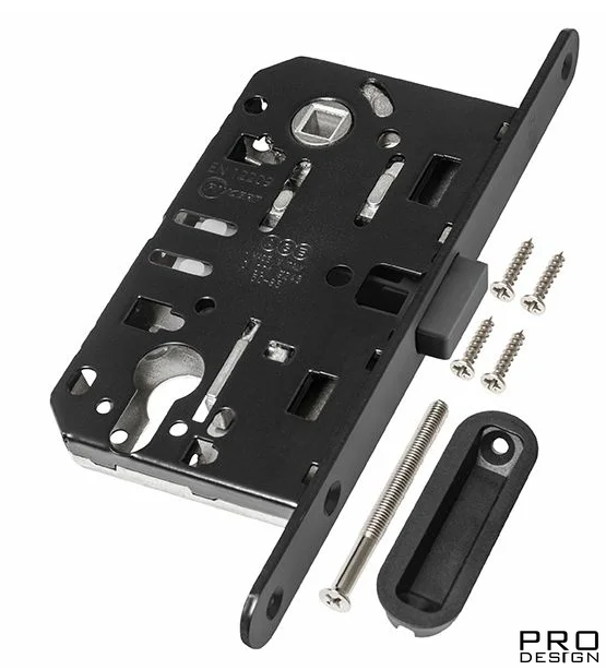 Магнитный замок AGB для межкомнатных дверей под цилиндр, Чёрный декор.