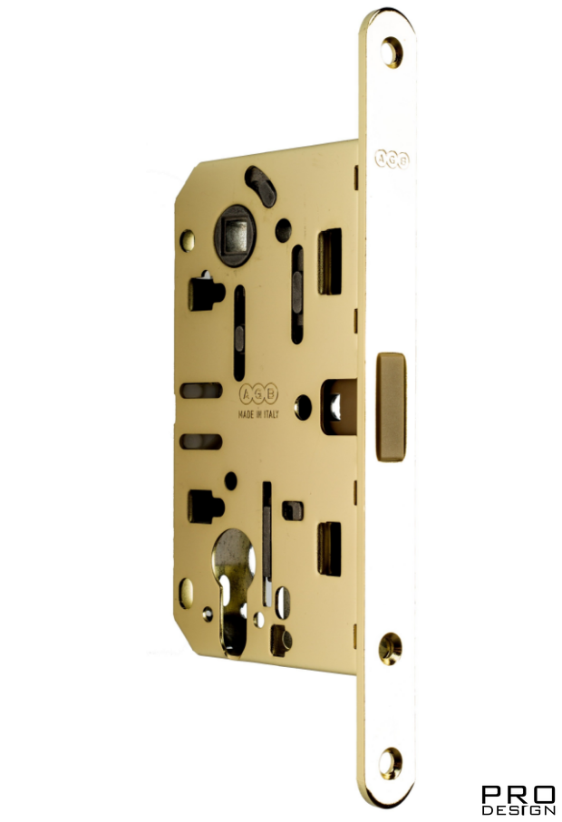 Магнитный замок AGB для межкомнатных дверей под цилиндр, Золото декор.