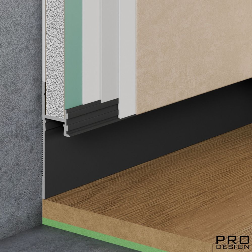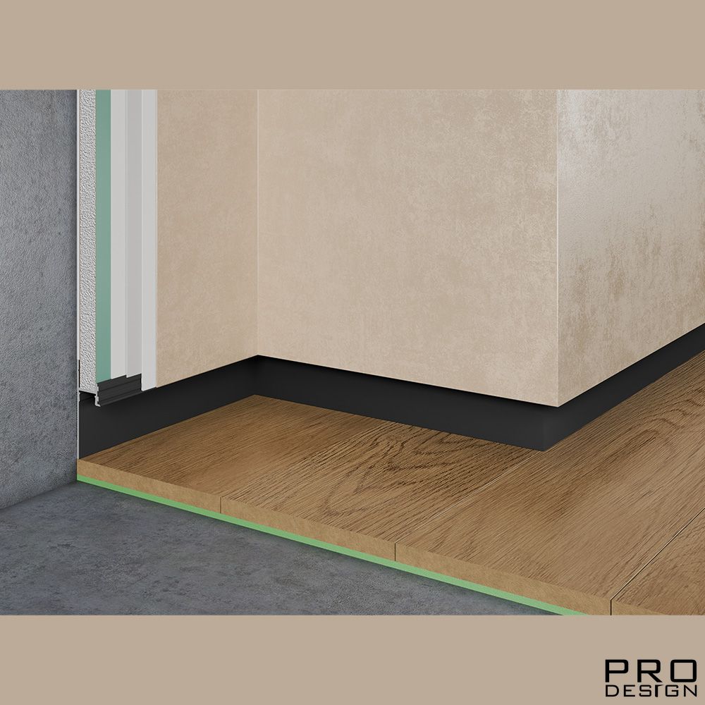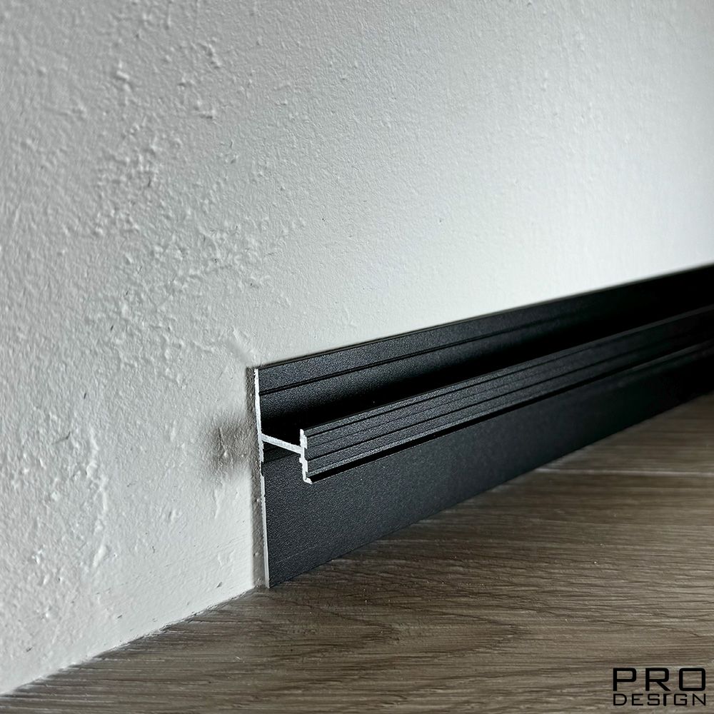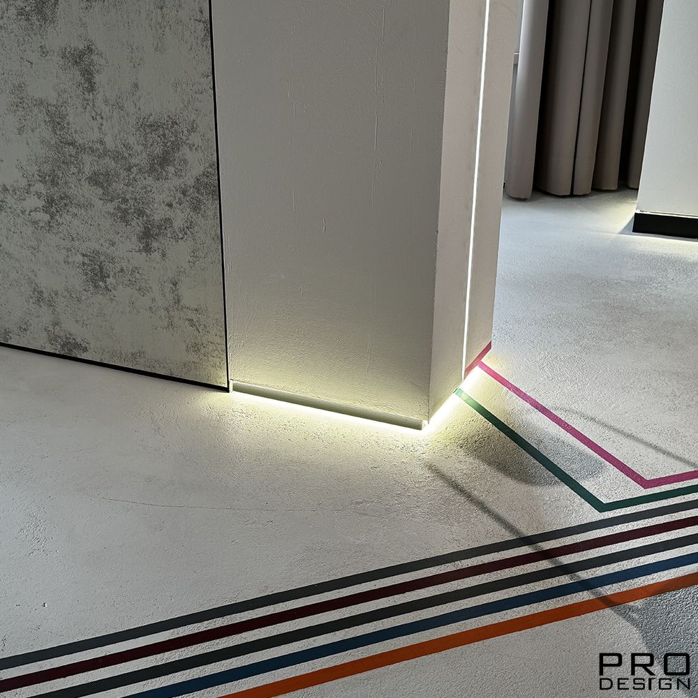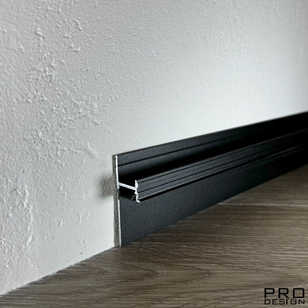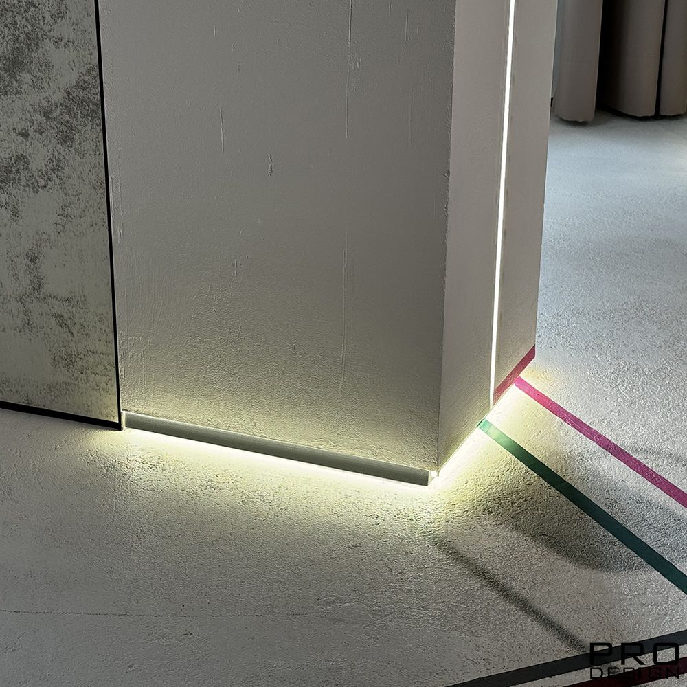 Теневой плинтус скрытого монтажа Pro Design из алюминия встраиваемый в стену, имеет большое количество применения, позволяет создать эффект парящей стены.