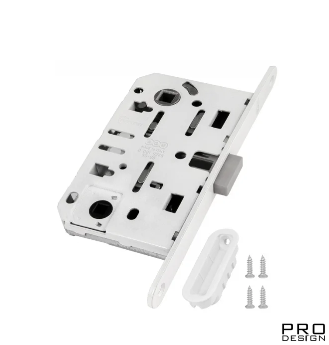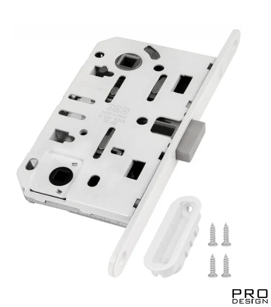 Магнитный замок AGB для межкомнатных дверей под сантехнический фиксатор, Белого цвета.