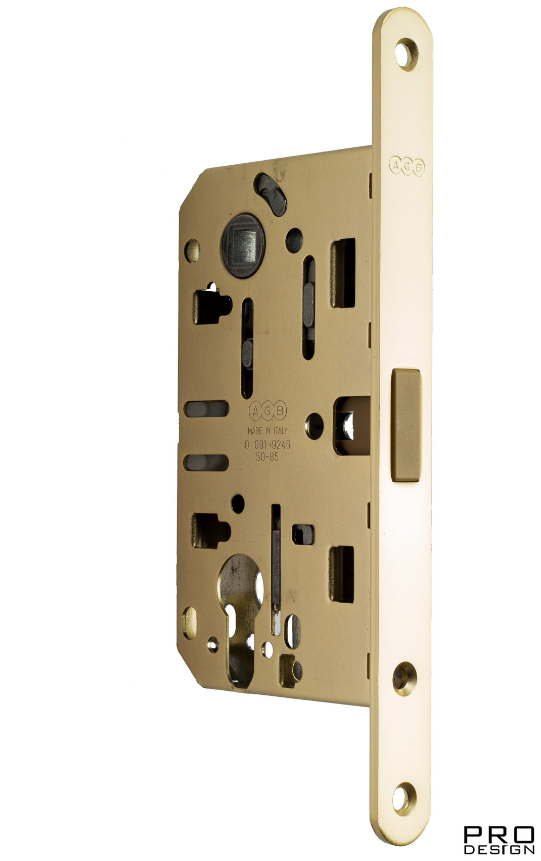 Магнитный замок AGB для межкомнатных дверей под цилиндр, Матовое золото декор.